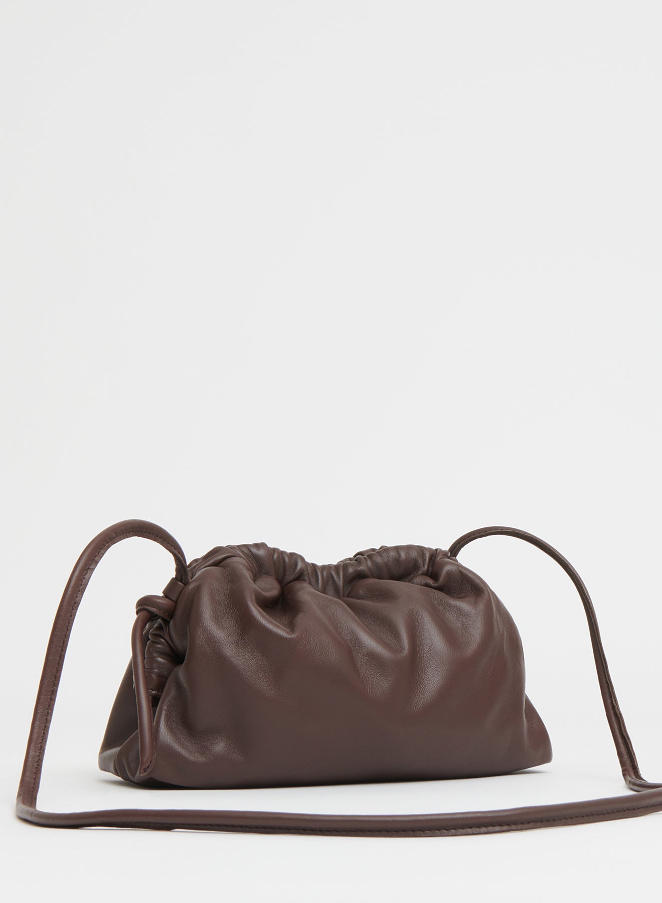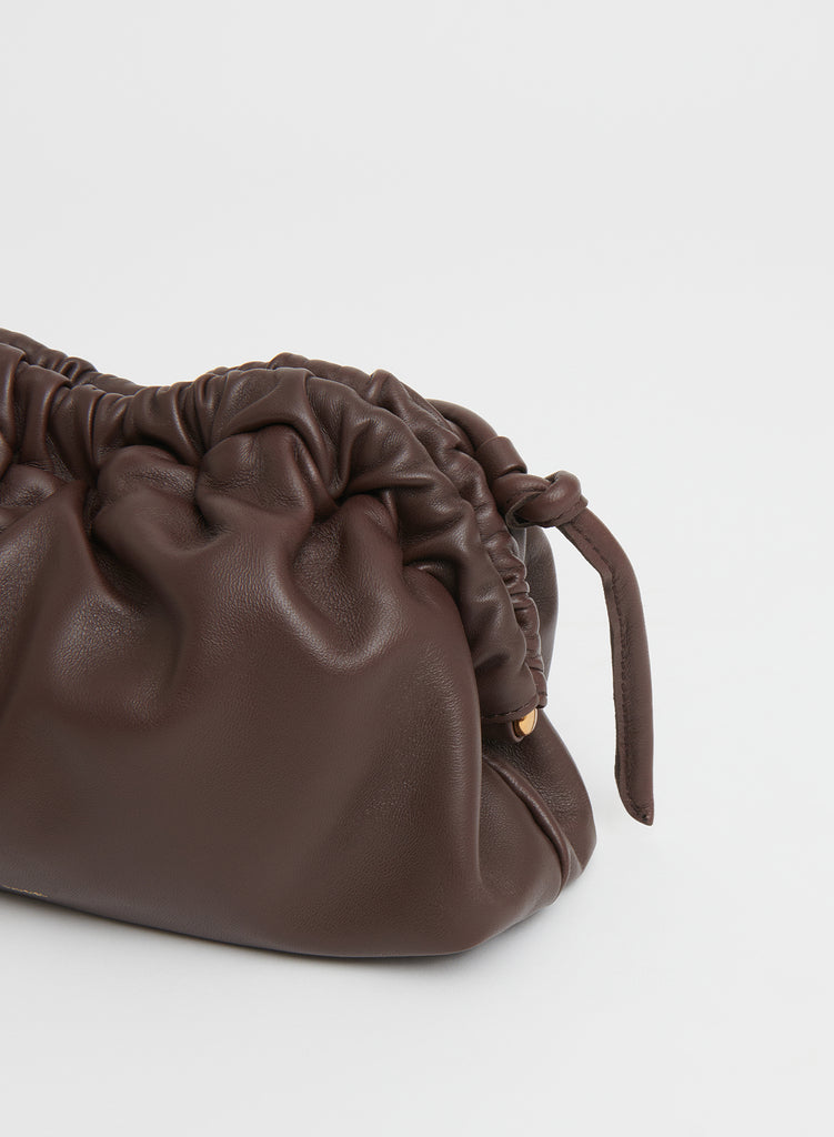 A Mansur Gavriel signature, this sculptural clutch is handcrafted from supple lambskin, featuring an elegantly curved, ruched frame with a magnetic closure. It also features a vibrant red interior. Wear it as a clutch, shoulder, crossbody, or belt bag. The Italian lambskin is an ultra-smooth, buttery leather, known for its delicate touch and luxurious look. Over time, the leather becomes even softer and smoother, while maintaining its quality and longevity. Fits up to an iPhone Max.