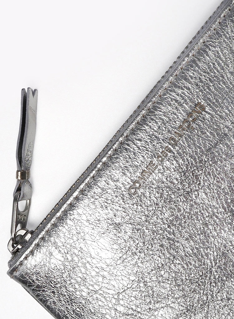 The Comme des Garçons classic pouch is an iconic and understated staple. This bolder iteration is constructed from metallic textured leather and features a subtle debossed logo and silver hardware.