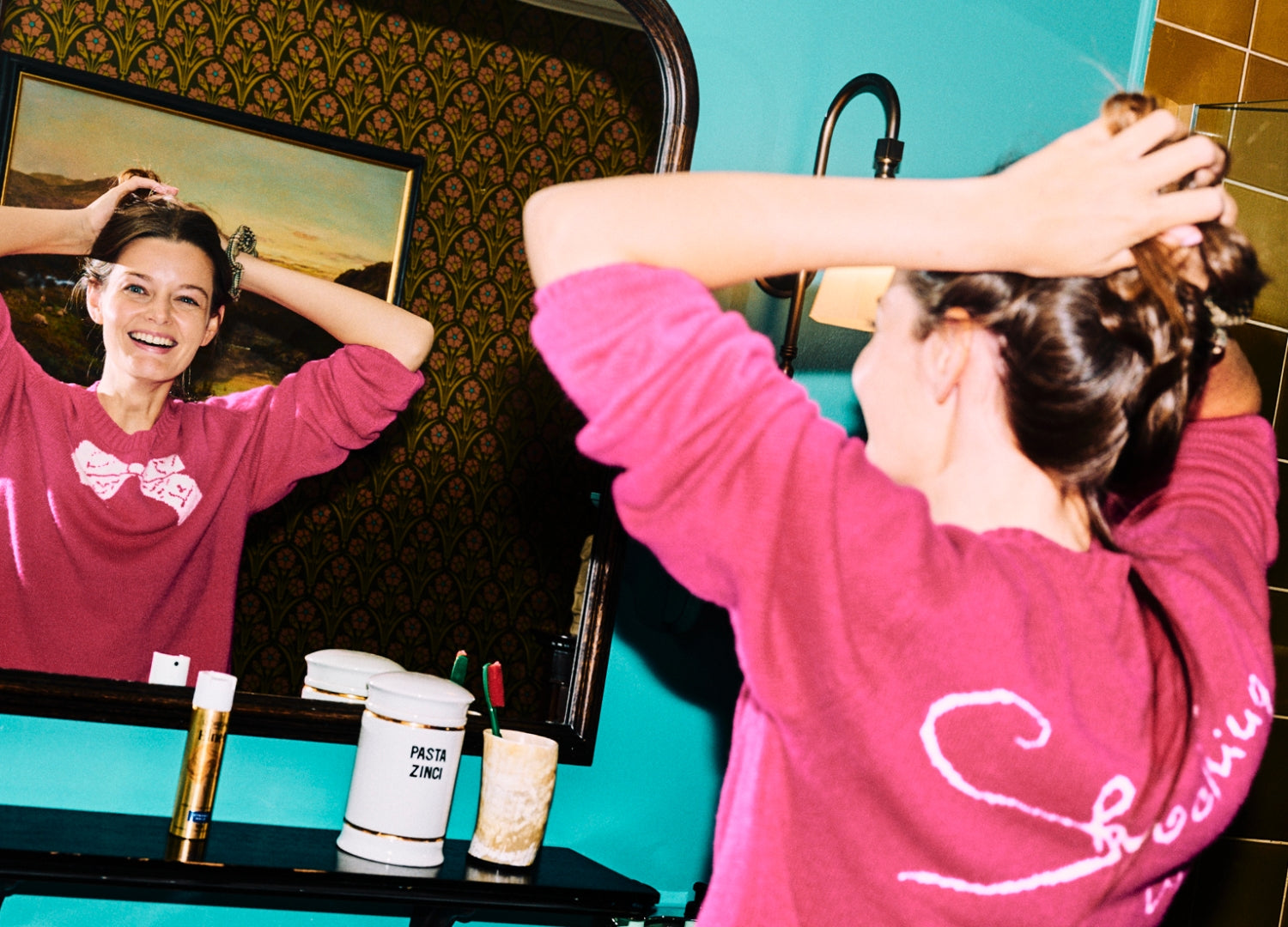 The Nae Bother collection celebrates whimsical Fife stories. A bespoke range of unisex jumpers in the finest pure cashmere, designed by JANECARR for The Fife Arms Hotel and handmade in Scotland. The jumpers are emblazoned with playfully irreverent slogans that speak to the hotel and its surrounding area in the Cairngorms. They are handmade in the Scottish cashmere heavyweight tradition to create a hand-me-down style as if knitted by your Scottish grandmother.