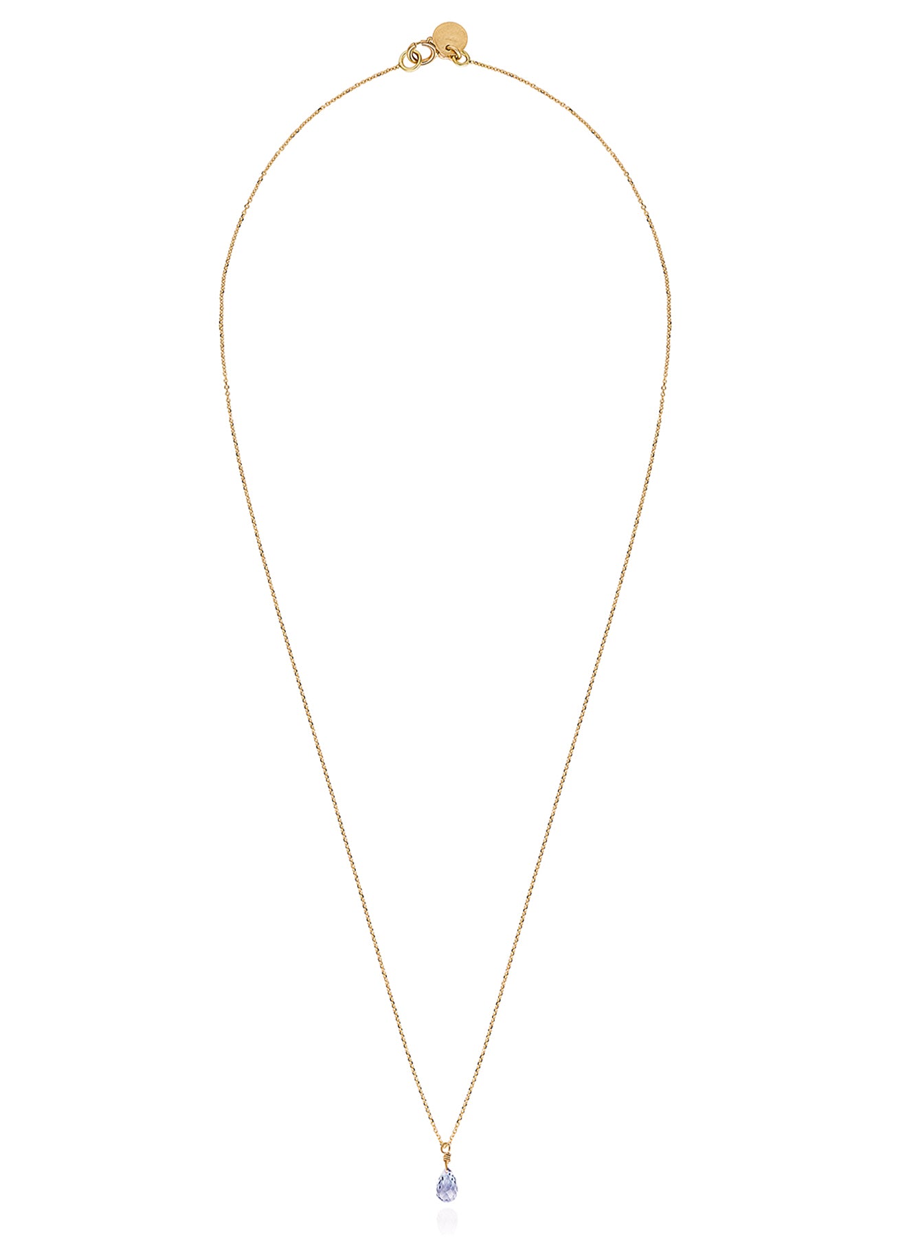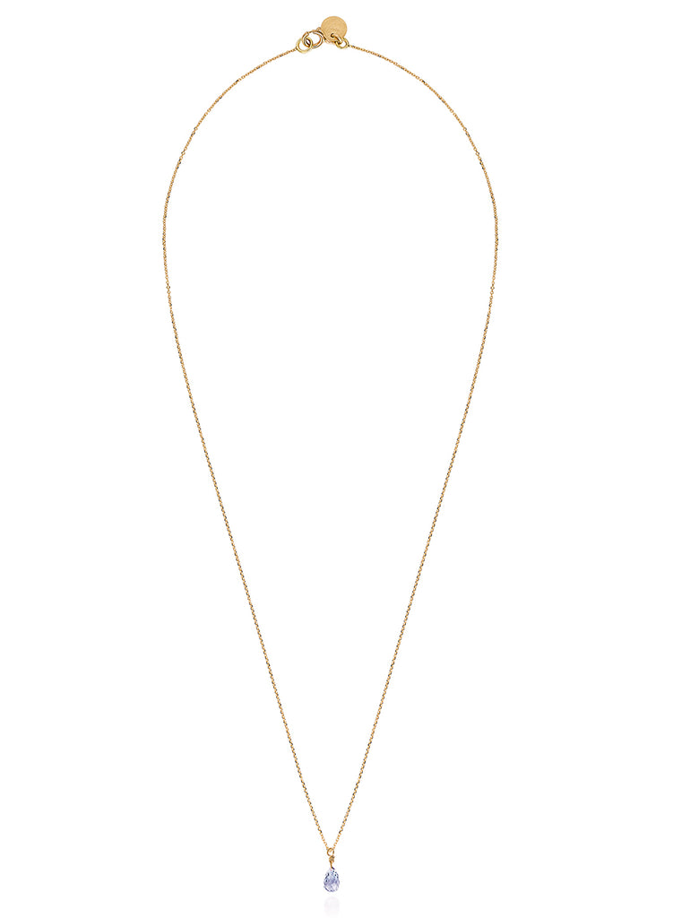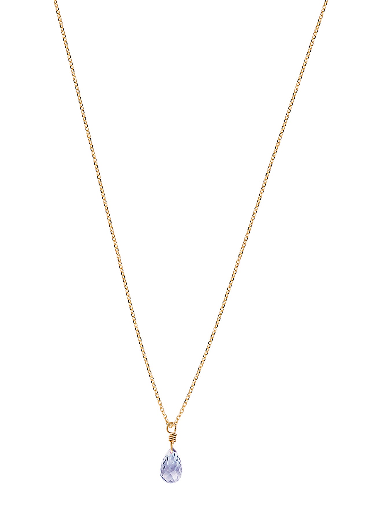18ct yellow gold chain necklace with a lilac blue sapphire briolette drop.