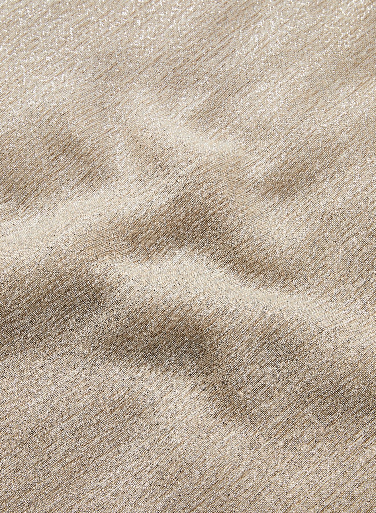 Metallic silver Lurex woven with pale beige cashmere and linen creates the perfect summer style to transition from day to night.