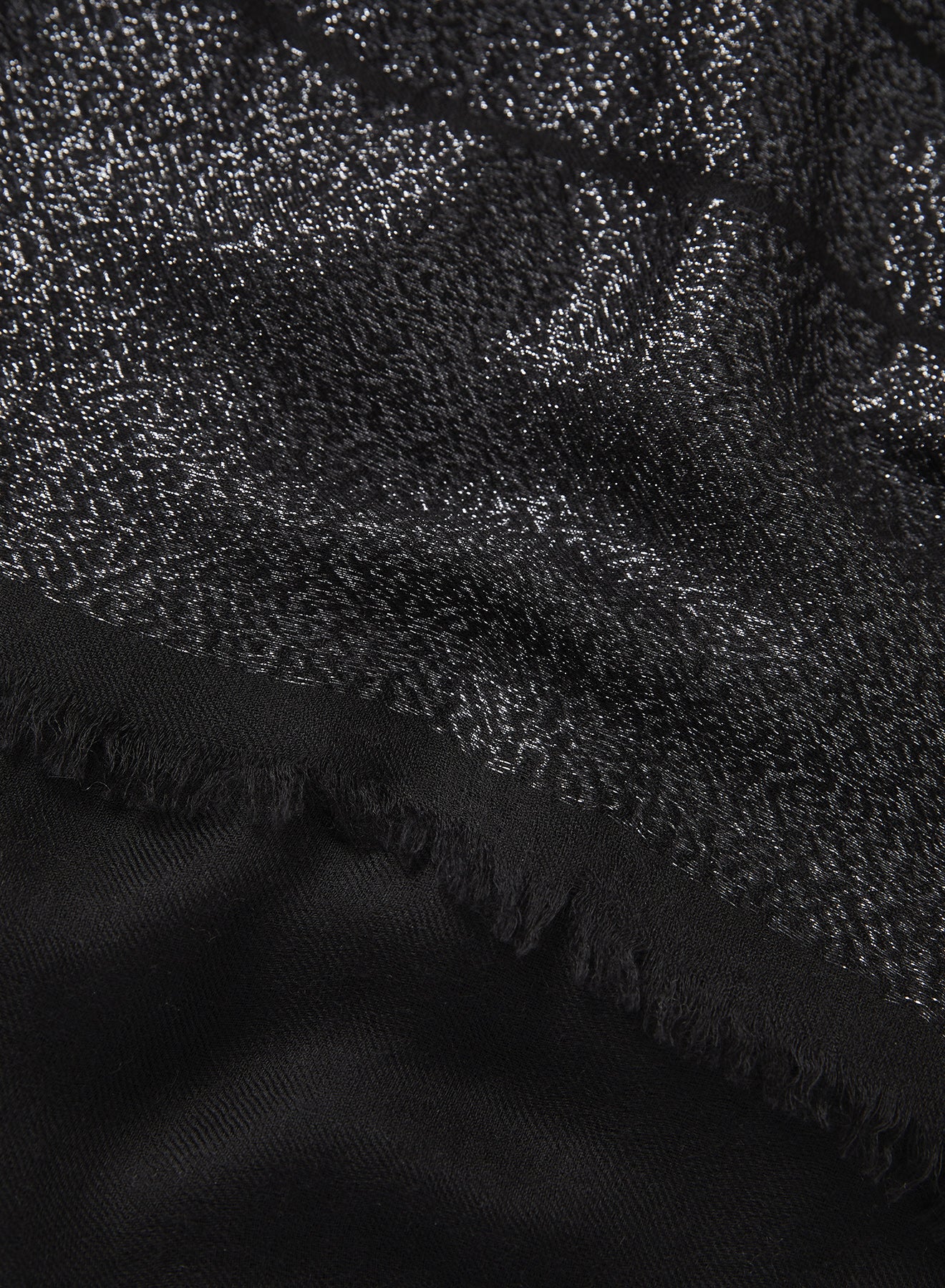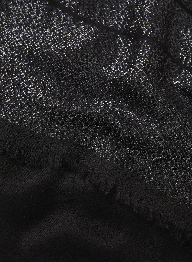 Blissfully soft black cashmere in a refined twill weave is embellished with subtle stripes of metallic silver Lurex that radiantly shine when they catch the light. The perfect companion for weddings and events, or just a touch of daytime sparkle.