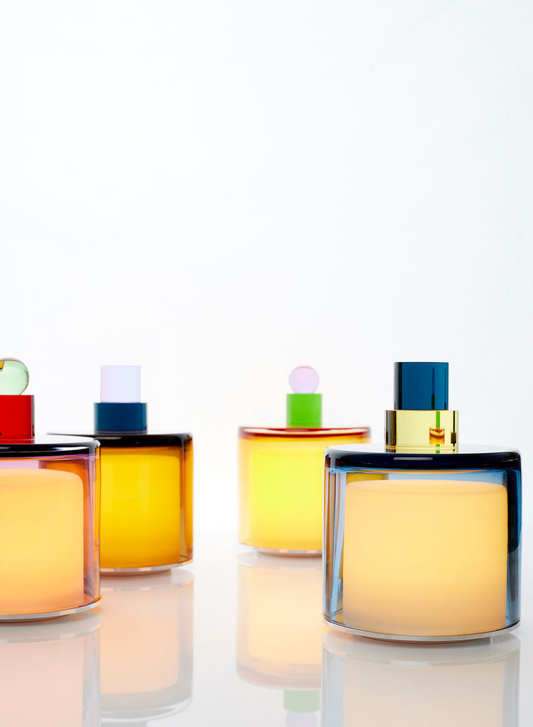 Graphic table lamp in a trio of colours, designed in London by Paola Petrobelli. The glass is hand-blown in Venice to be beautifully imperfect.