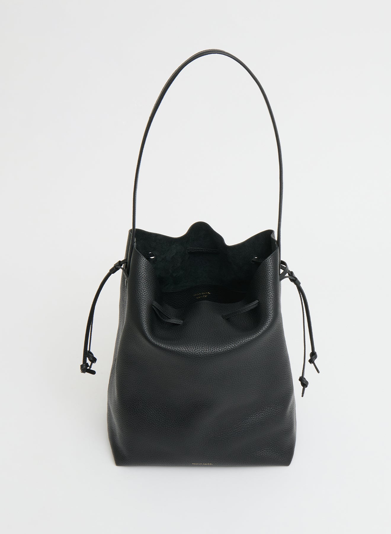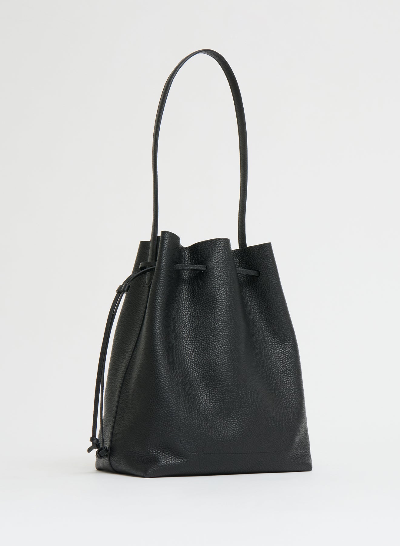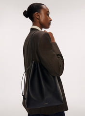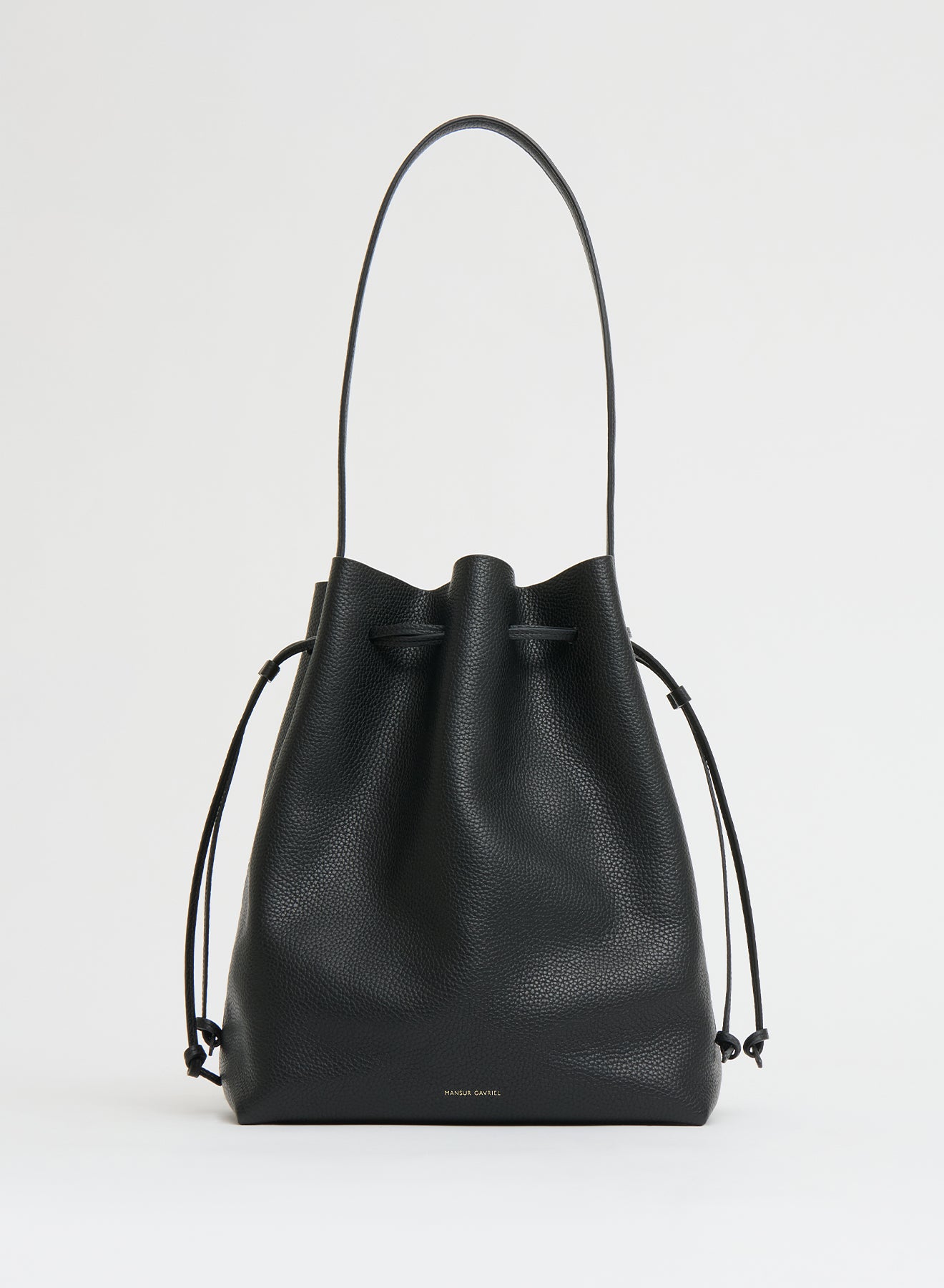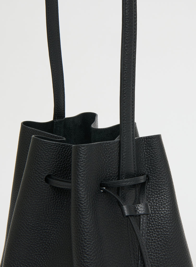 Mansur Gavriel's iconic Cabas silhouette, reimagined as a bucket bag. This updated shape is perfectly slouchy and features sleek elongated handles, an interior pocket, and is spacious enough for a 14" laptop. The Italian pebbled Leather is an ultra soft, textured leather with a natural, tactile finish. The tumbling process used on this leather creates a durable material that is less prone to scratching and wear than other leathers.