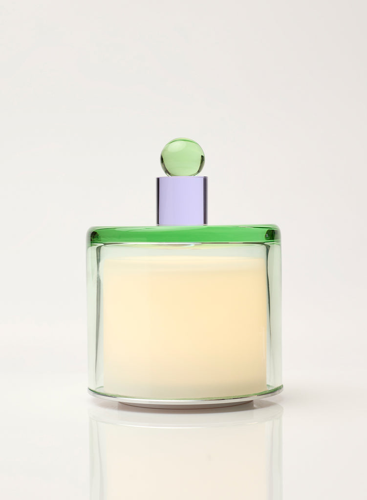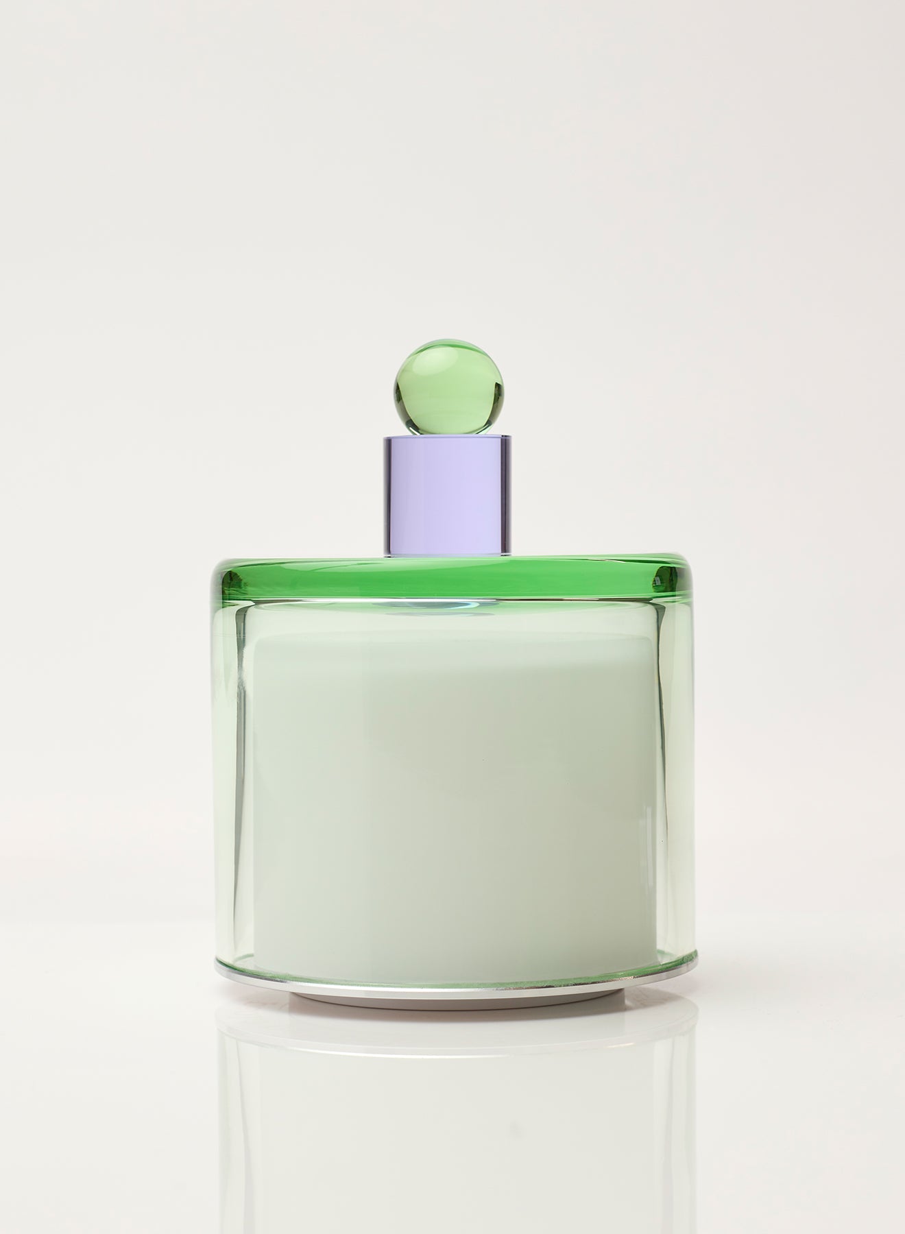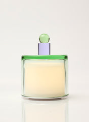 HAND BLOWN GLASS LAMP IN GREEN AND LILAC