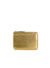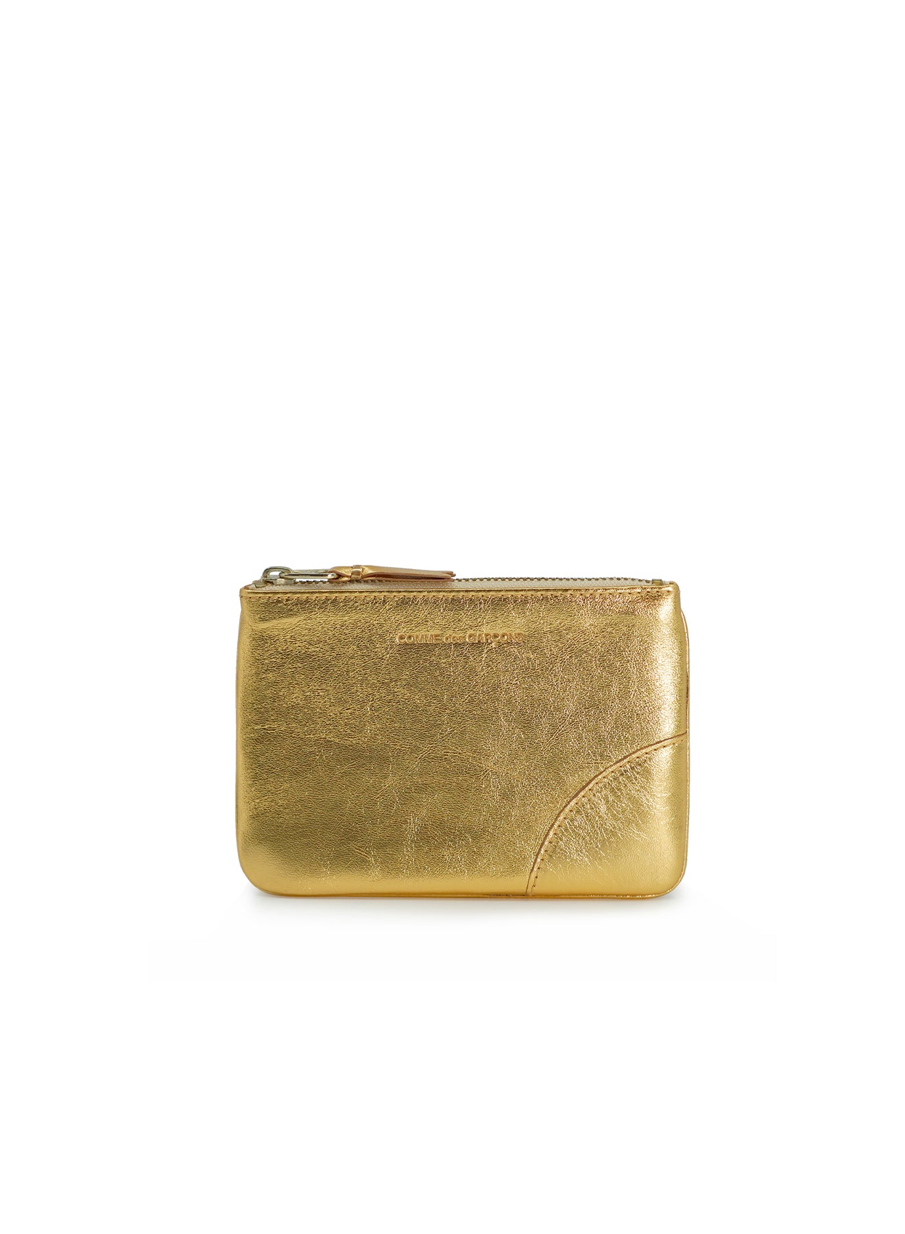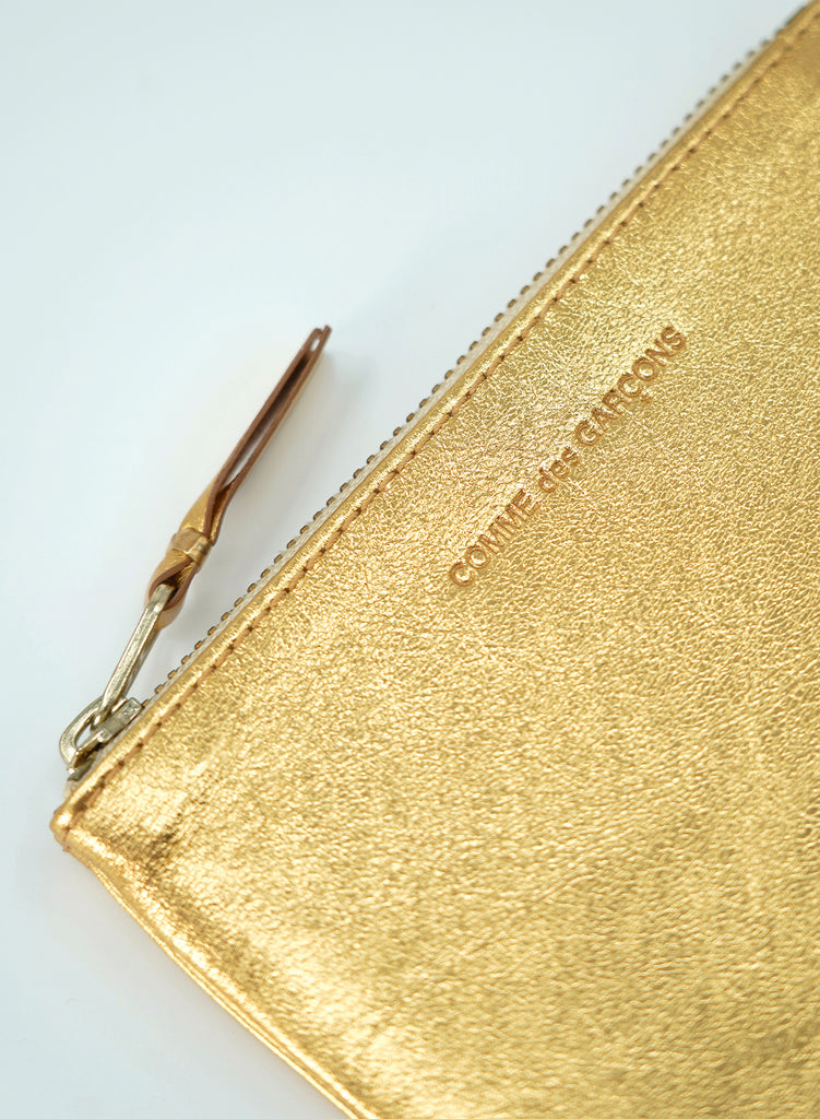 The Comme des Garçons classic pouch is an iconic and understated staple. This bolder iteration is constructed from metallic textured leather and features a subtle debossed logo and gold hardware.