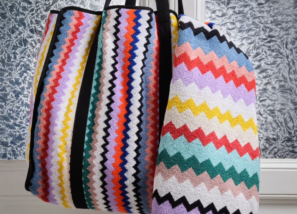 Founded in 1953 by Ottavio and Rosita Missoni, this family-run label has created an instantly recognisable design aesthetic through its colourful knitwear and signature zigzag prints. This love of pattern has become the backbone of Missoni’s collections, and their kaleidoscopic and geometric designs carry through to a range of accessories and homeware that bring a stylish Italian flair.