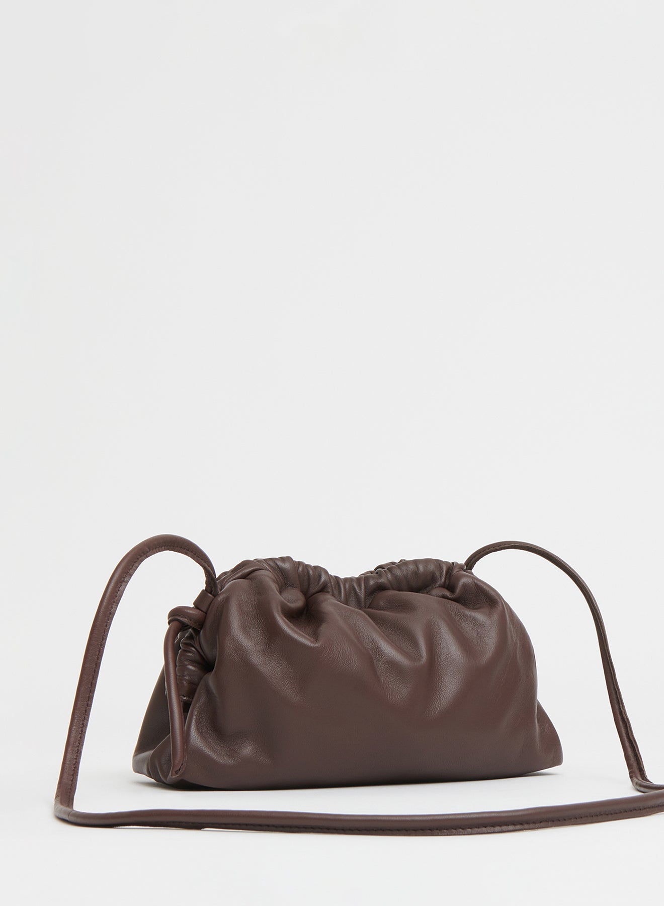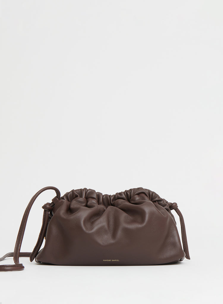 A Mansur Gavriel signature, this sculptural clutch is handcrafted from supple lambskin, featuring an elegantly curved, ruched frame with a magnetic closure. It also features a vibrant red interior. Wear it as a clutch, shoulder, crossbody, or belt bag. The Italian lambskin is an ultra-smooth, buttery leather, known for its delicate touch and luxurious look. Over time, the leather becomes even softer and smoother, while maintaining its quality and longevity. Fits up to an iPhone Max.