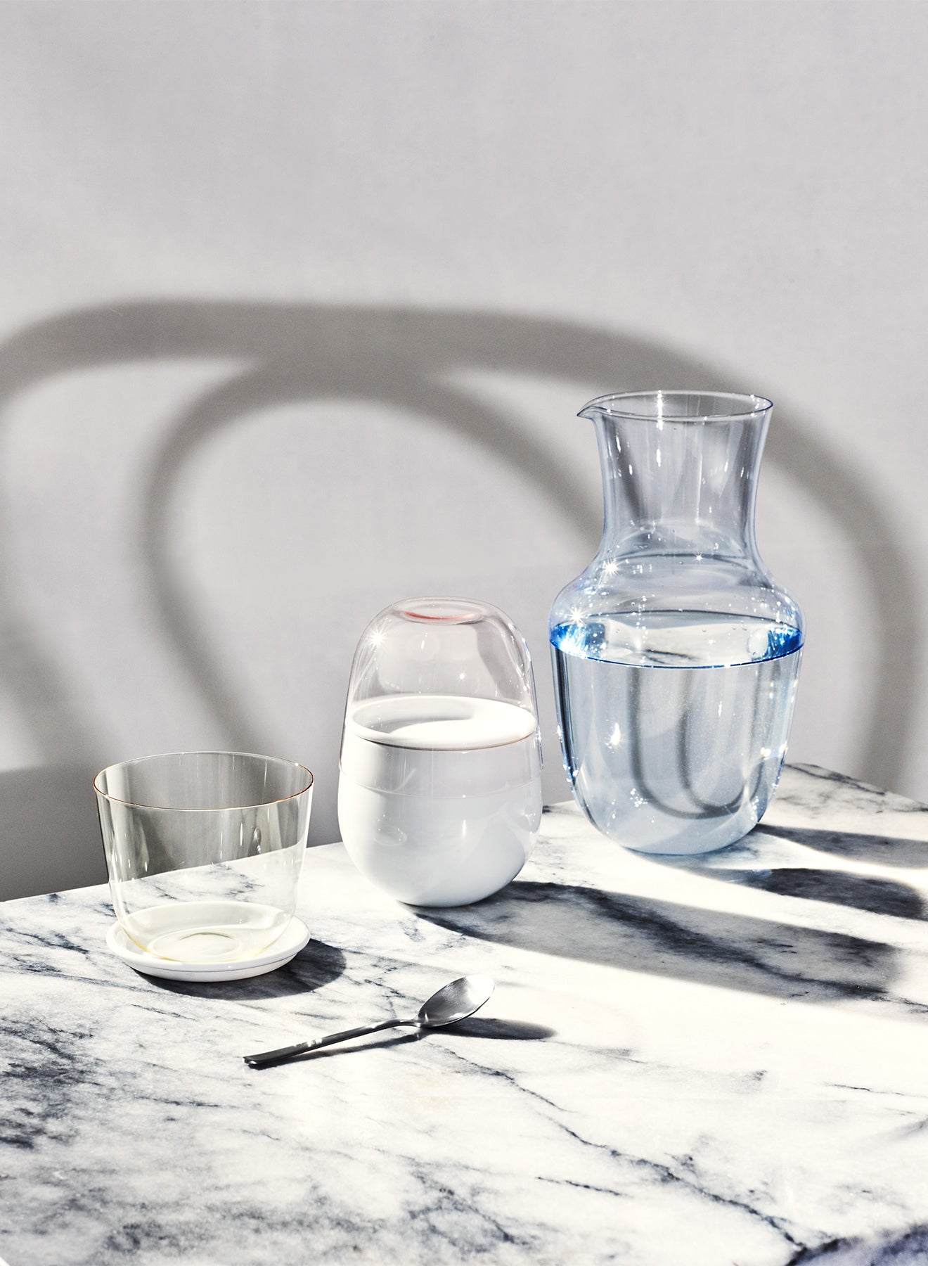 It accompanies the “Alpha" crystal water tumblers, which are stackable and designed to fit perfectly into the user's hand.Â