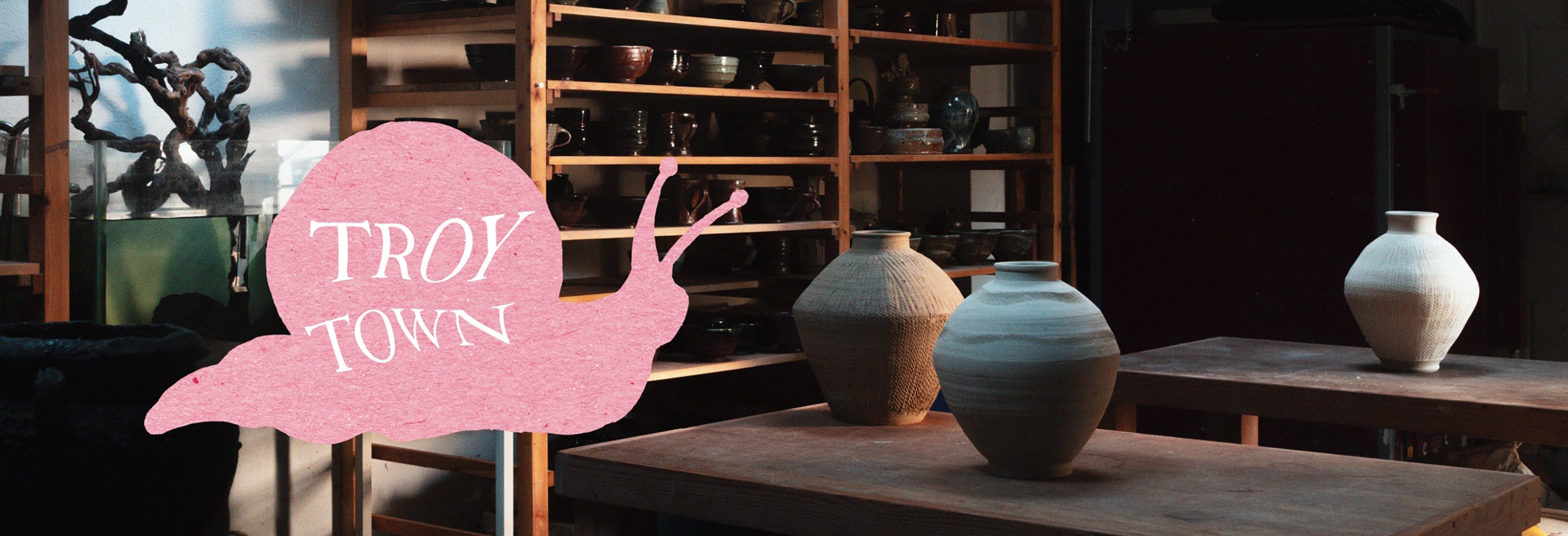 Troy Town Art Pottery is Aaron Angell's ceramic studio. Since its opening in 2014, this radical workshop has worked with over 80 artists. It began as the first sculpture-specific ceramic workshop for artists in the UK to produce in a high-craft environment using traditional and innovative processes in the Anglo-Japanese style.