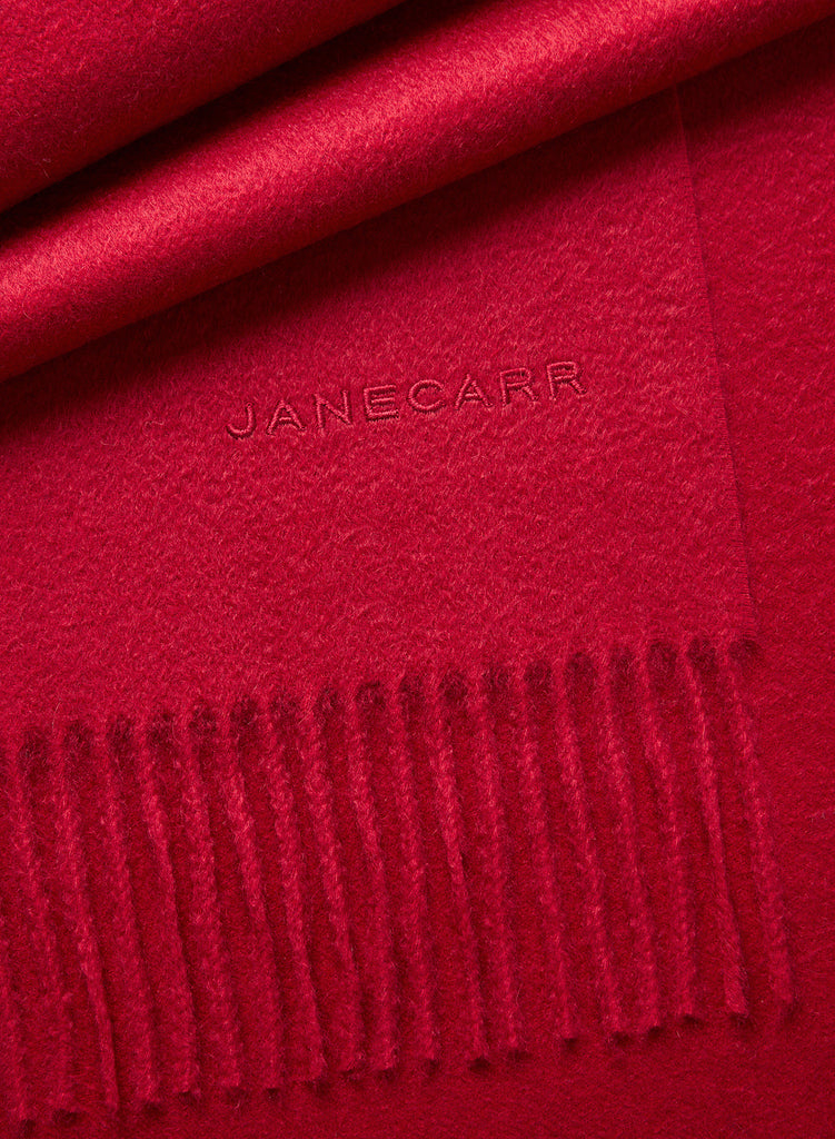 A product of exceptional softness in pure cashmere. This classic scarf has been woven and combed to give a ripple-textured nap, creating a luxurious lustre and comforting warmth. Made in Italy and finished with fringing and matching embroidered JANECARR logo. A timeless and versatile style for any occasion.