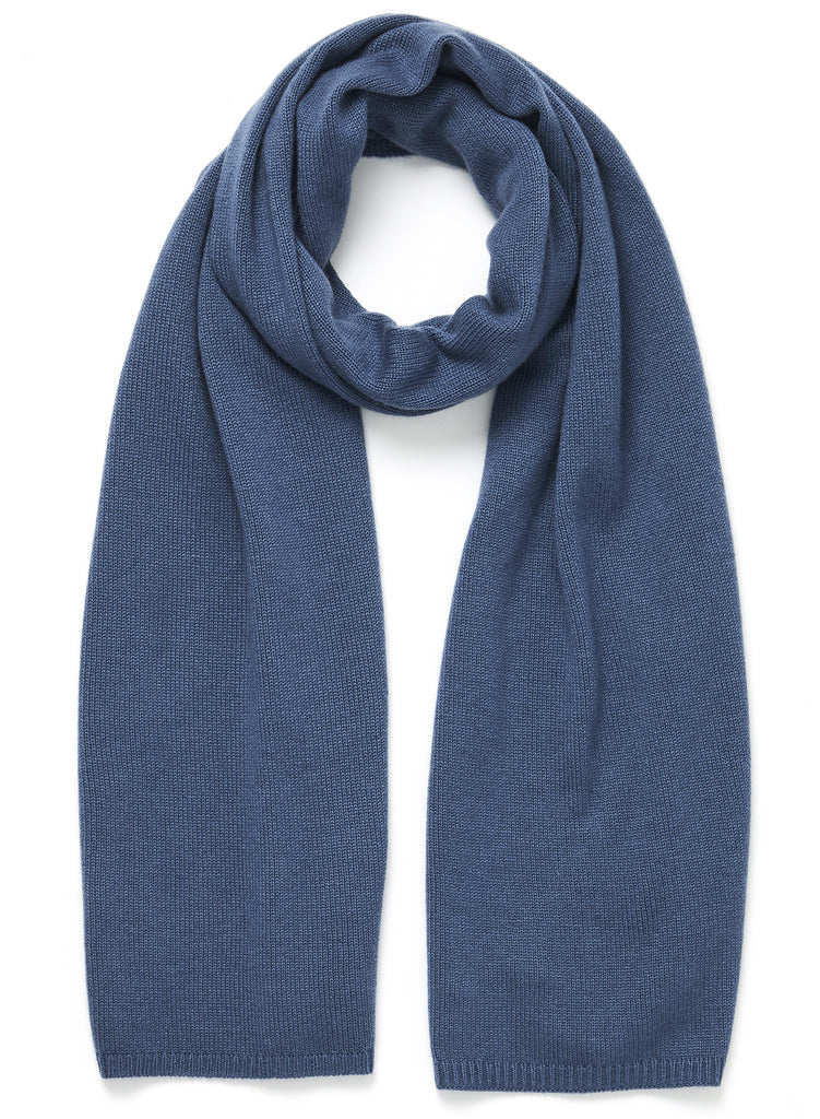 Sumptuous blue pure cashmere in a classic, lightly ribbed knit design with a semi-gloss finish. Loop it around your neck and knot at the front for a look that's versatile enough to go with any outfit.